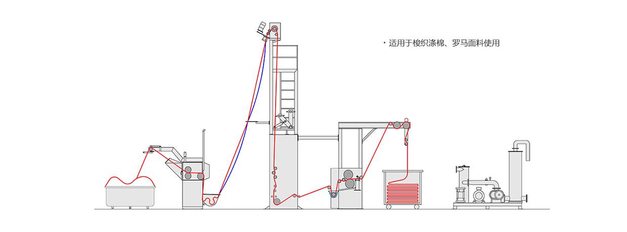 適用于錦綸泳布、滌綸、彈力面料,梭織滌棉、四面彈、羅馬面料的染色后開幅壓水吸水使用
